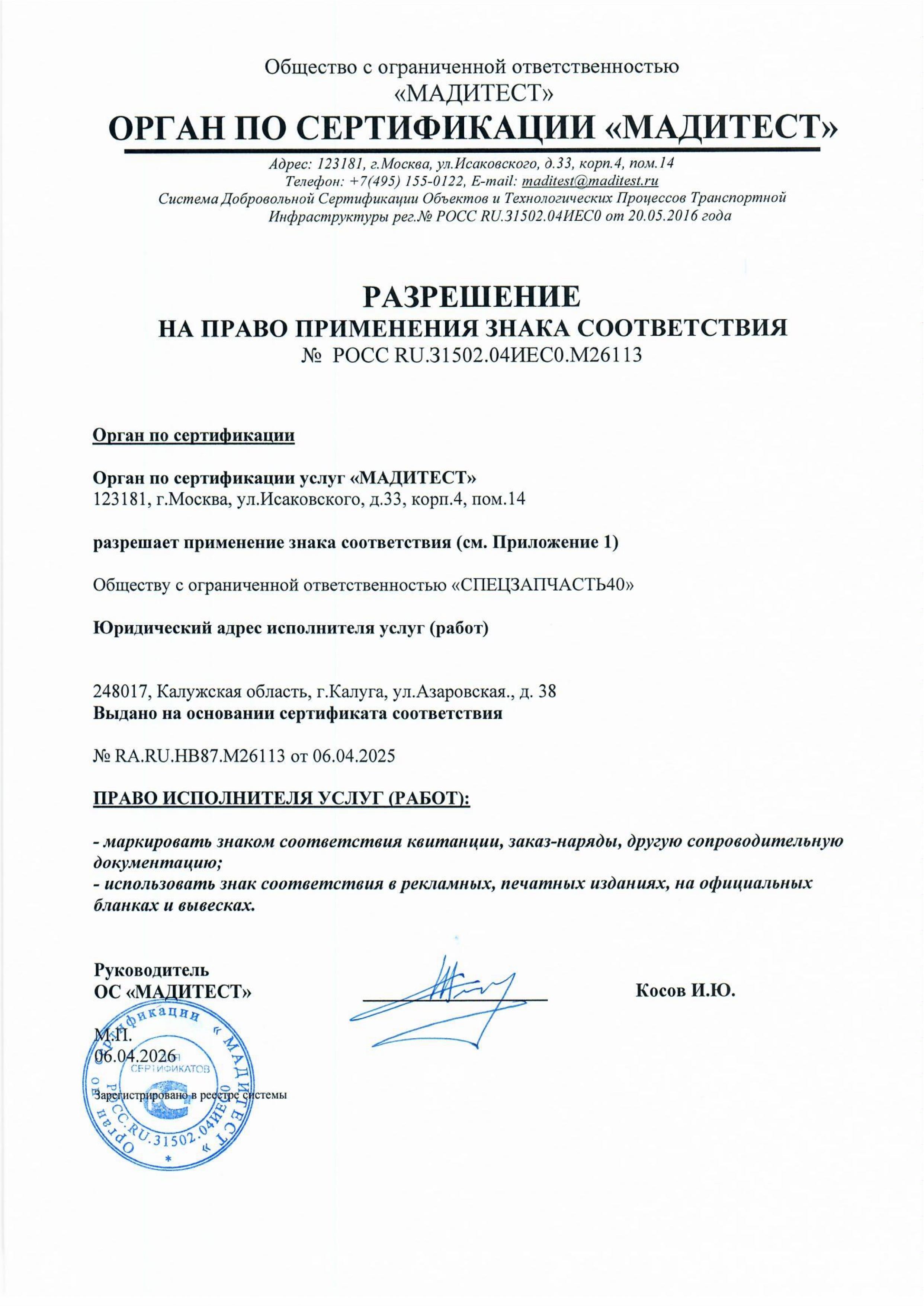 Сертификат соответствия